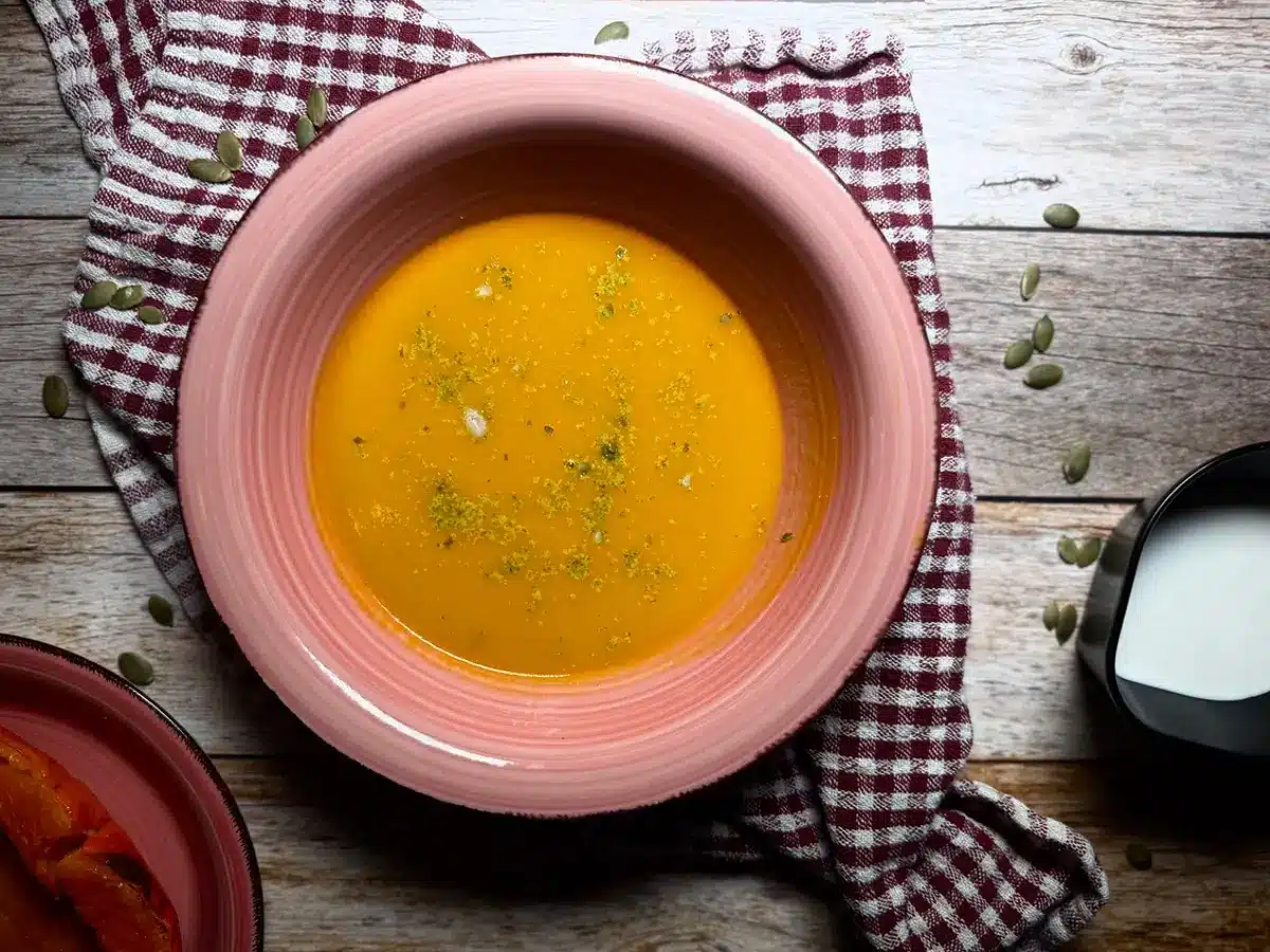 Looking for a healthy, tasty, and easy creamy pumpkin soup the whole family will love? This pumpkin soup, made with hokkaido squash, is a true autumn treat – dairy-free, yet rich and creamy thanks to the addition of smooth coconut milk that gives it a gentle, exotic twist. If you enjoy thick, wholesome pumpkin soups without cream, this might just become your favorite!